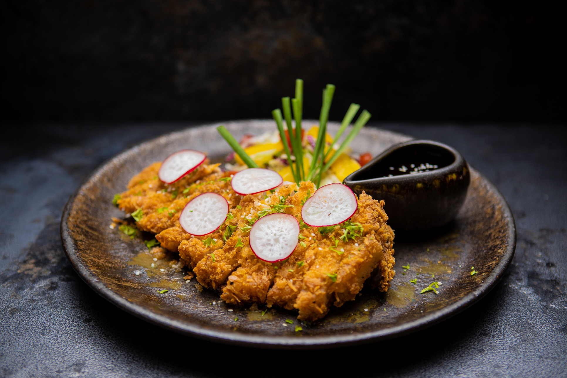 En köttabit som är panerad.